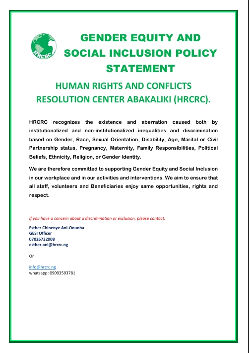HUMAN RIGHTS AND CONFLICTS RESOLUTION CENTRE ABAKALIKI